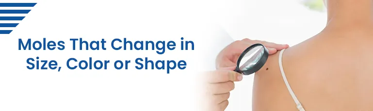 When a mole changes in size, color, or shape, it may indicate that the cells in the mole are undergoing changes, potentially due to the development of skin cancer. This is not always the case, as moles can change over time due to normal growth or hormonal changes, but any noticeable changes should be evaluated by a doctor.